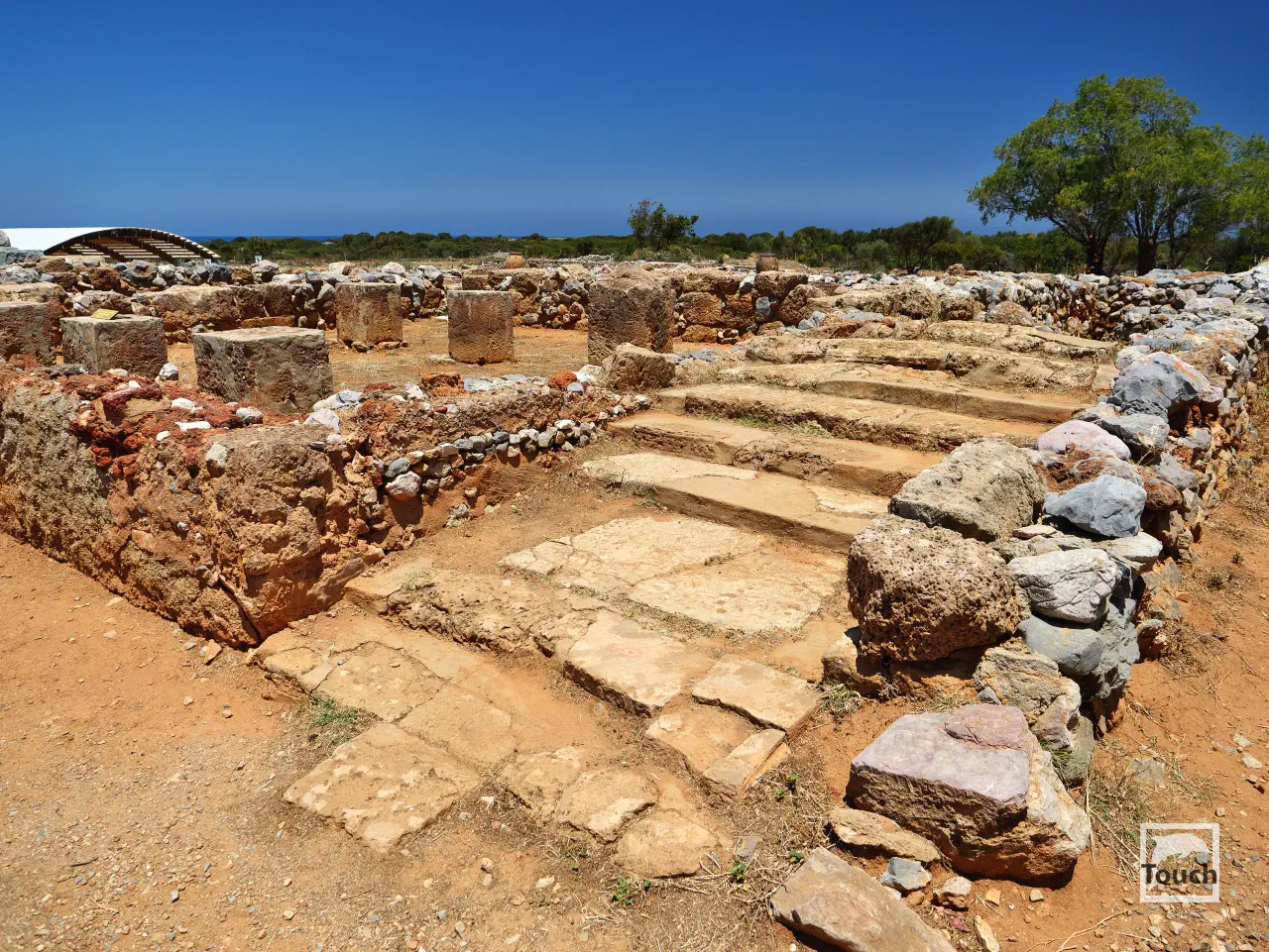 Includes: Agiofarago, Martsalo gorge, Odigitria Monastery, Kokkini Ammos, Matala, Kommos, Ancient Kommos, Kalamaki, Pachia Ammos, Afrathias, Kokkinos Pyrgos, Agia Galini, Glaros Hotel, Agia Galini beach, Agia Triada, Agios Georgios, "Mother Olive Tree" (Mana Elia), Phaistos (Festos) Minoan Palace, Panagia Kaliviani Monastery, Roufas Caves, Mikri Labyrinth (Labyrinthaki) Cave, Messara Plain, Gortys, Basilica of Agios Titos, Odeon, Ancient Theatre, Great Basilica, Baptistery, Pythion Theatre, Temple of Apollo Pythios, Praetorium, South Baths, Temple of Egyptian Gods, Great Theatre, Agios Thomas, Roman Tombs, Agios Ioasaf, Gate of the Underworld, Kera Spiliotissa, Agios Thomas, Agia Varvara - Geographical Centre Point of Crete, Gria’s Pies, Rizinia - Minoan Town, Siderospilia Necropolis, Ano Asites, Palianis Monastery, Venerato Gorge, Nea Vorizia, Vrontissi Monastery, Zaros Lake, Agios Efthimios, Agios Nikolaos Monastery, Rouvas Gorge, Rouvas Forest, Psiloritis, Timios Stavros, Agios Fanourios, Nida Plateau, Mitato - Shepherd's House, Ideon Andron Cave, Zominthos, Anogia, Sfendoni Cave, Paliomylos, Sklavokambos, Ancient Tylissos, Tylissos, Almyros Spring, Agia Pelagia, Fylakes, Kladissos, Psaromoura, Mononaftis, Perla Apartments, Vrysis Cave, Margarites, Minoan Tomb of Margarites, Ancient Eleftherna, Pyrgi - Acropolis, Roman Cisterns, Ancient Aqueduct, Katsivelos (Polis), Orthi Petra (Necropolis), Ancient Bridge, Sotiros Christos, Museum of ancient Eleutherna, Ancient Lappa, Argyroupoli, Argyroupolis Springs