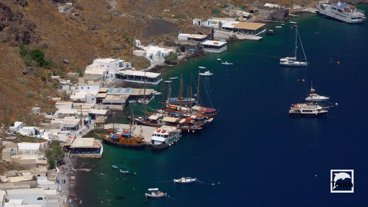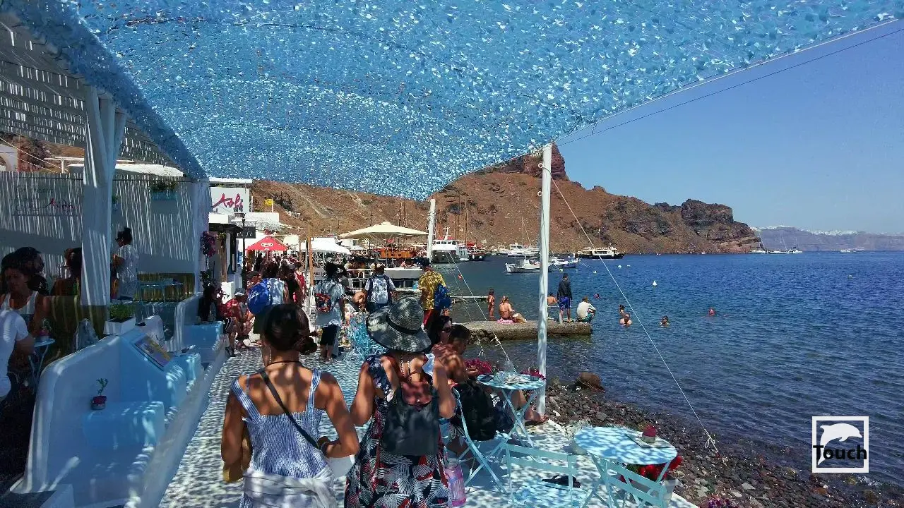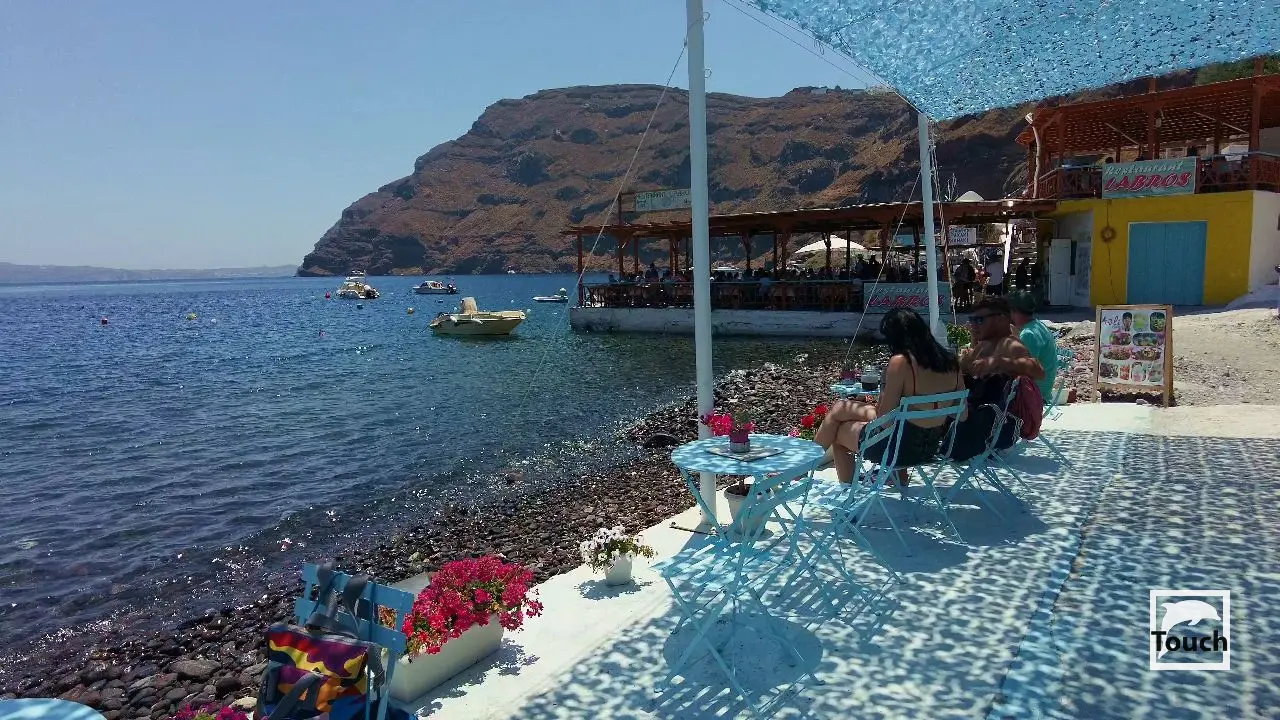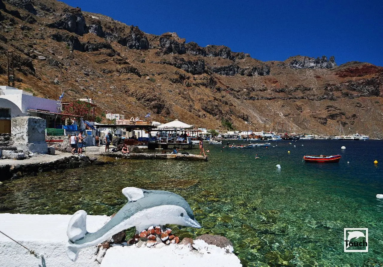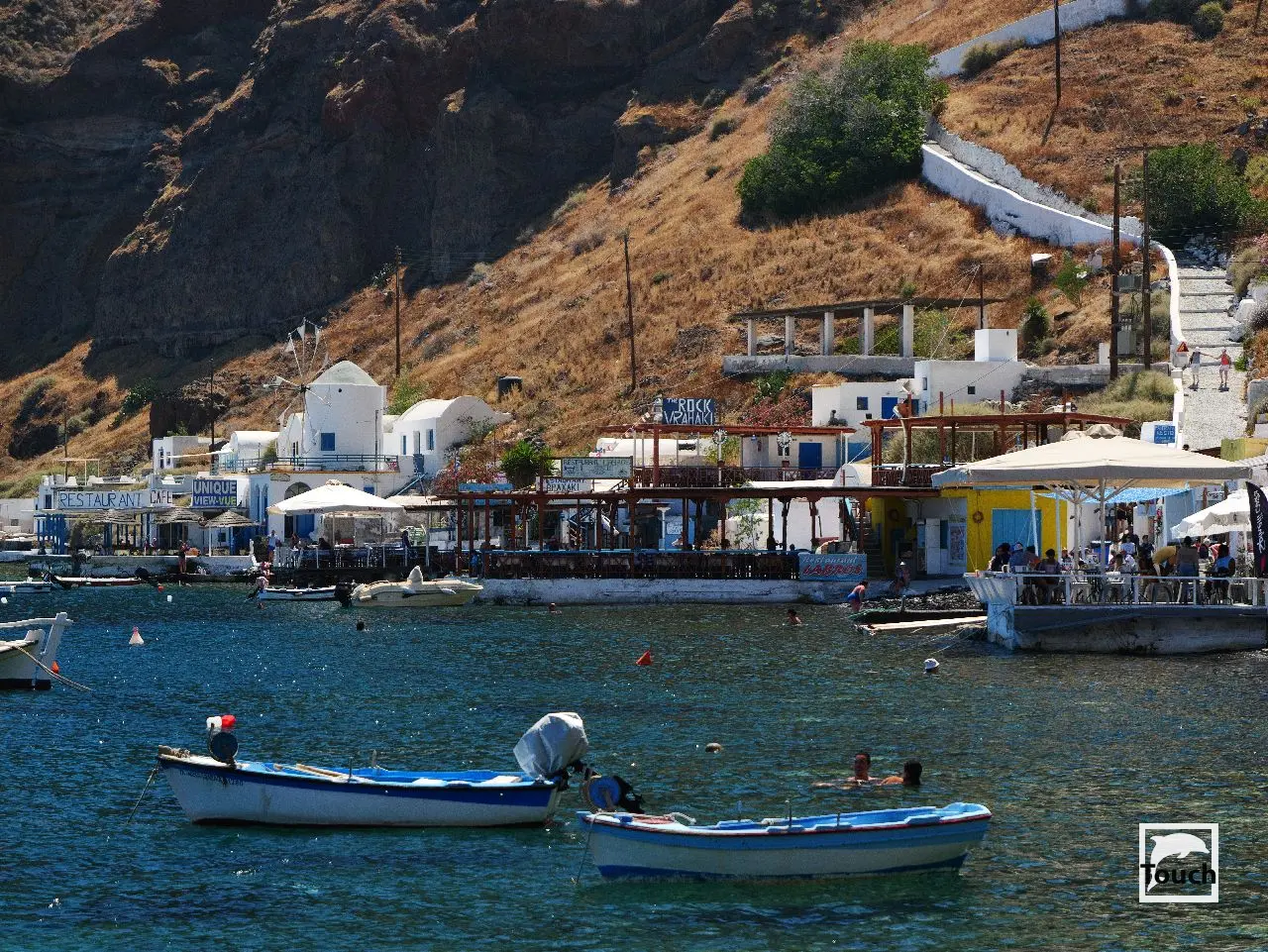 Includes: Perissa, Perivolos, Vlychada, Eros, Almyra, Akrotiri, Red Beach (Kokkini), Kambia, White Beach (Aspri), Black Beach, Mesa Pigadia, Platys Gialos, Agios Nikolaos, Apothikes (Caldera) - Balos Bay, Thermi, Plaka, Hot Springs, Palea Kameni, Korfos, Thirasia, Agii Epta Pedes, Armeni, Agios Nikolaos, Kantharos, Mavropetra, Baxedes, Kouloumbo, Pori, Xiropigado, Vourvoulos, Kanakari, Karterados, Monolithos, Agia Pareskevi, Kamari
