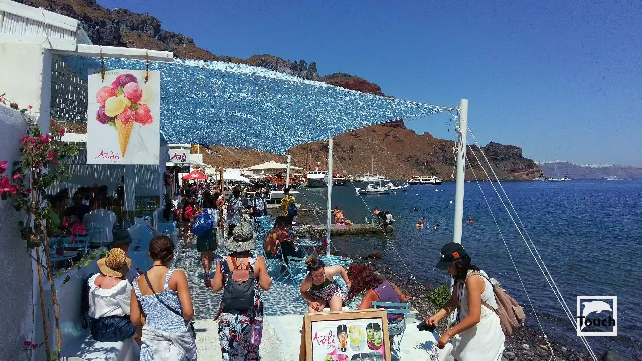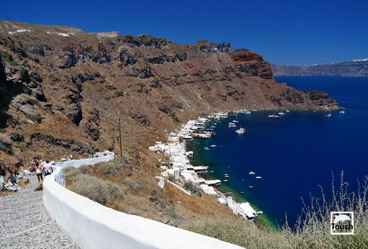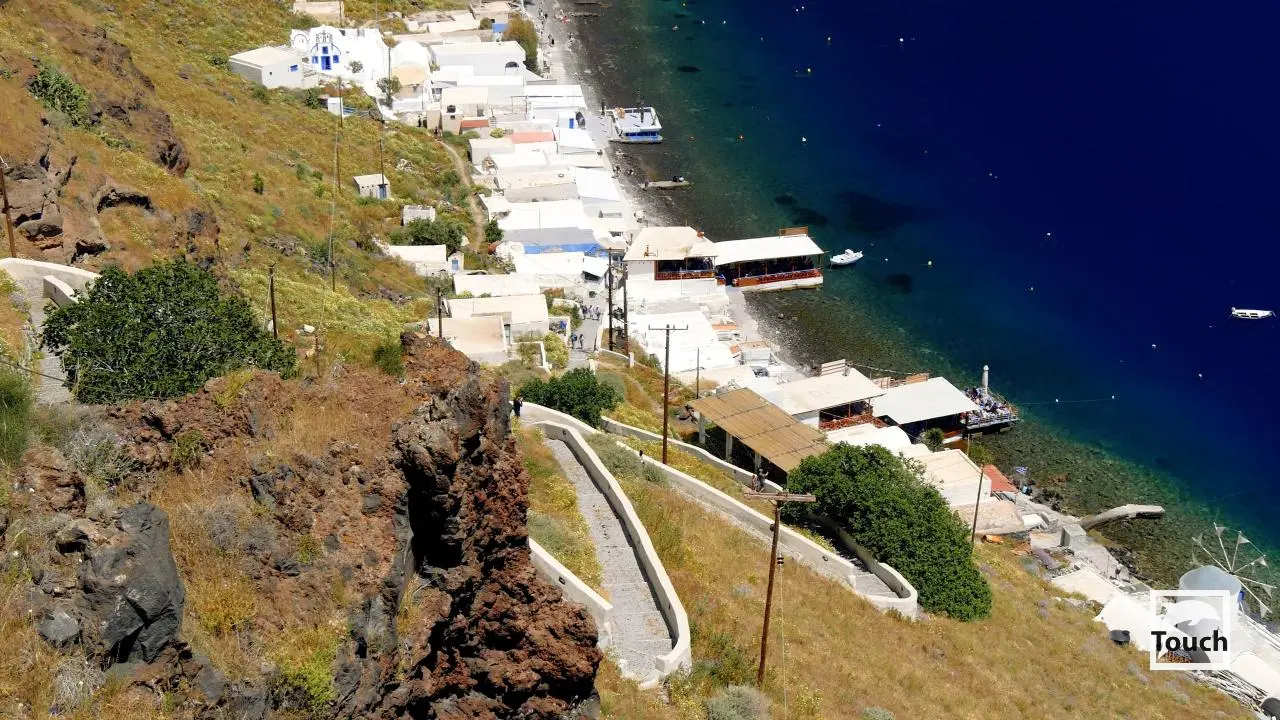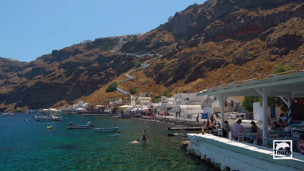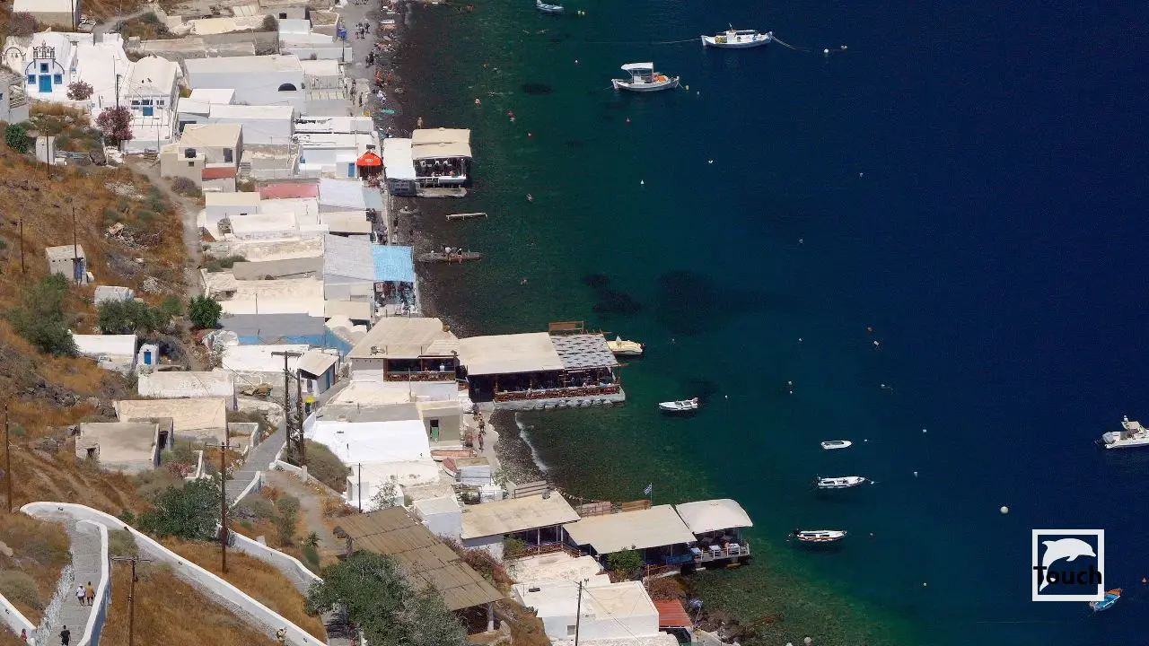 Includes: Perissa, Perivolos, Vlychada, Eros, Almyra, Akrotiri, Red Beach (Kokkini), Kambia, White Beach (Aspri), Black Beach, Mesa Pigadia, Platys Gialos, Agios Nikolaos, Apothikes (Caldera) - Balos Bay, Thermi, Plaka, Hot Springs, Palea Kameni, Korfos, Thirasia, Agii Epta Pedes, Armeni, Agios Nikolaos, Kantharos, Mavropetra, Baxedes, Kouloumbo, Pori, Xiropigado, Vourvoulos, Kanakari, Karterados, Monolithos, Agia Pareskevi, Kamari