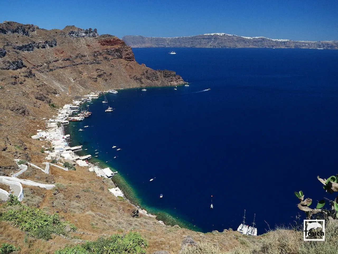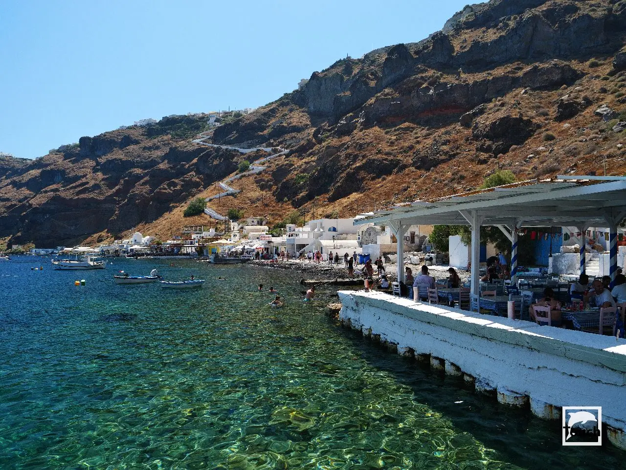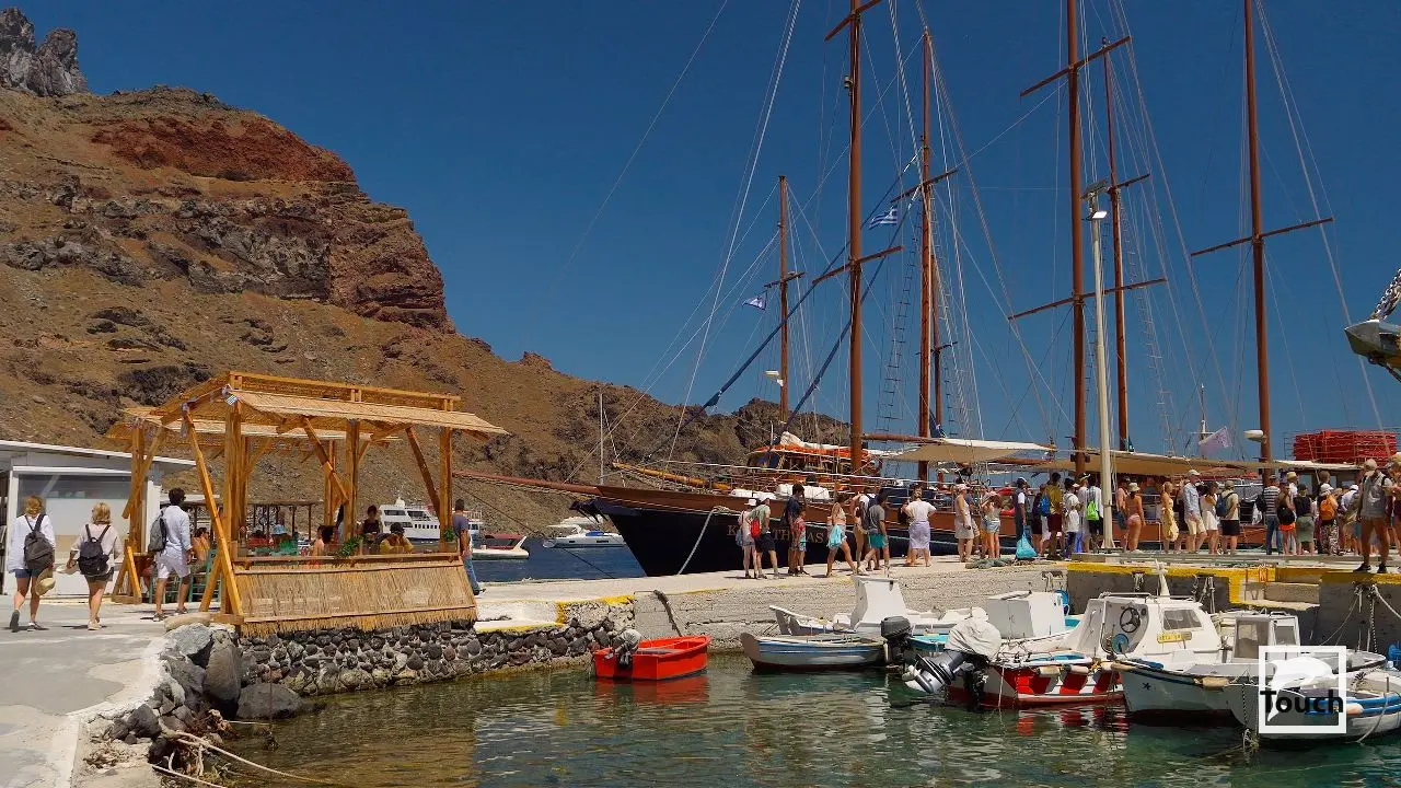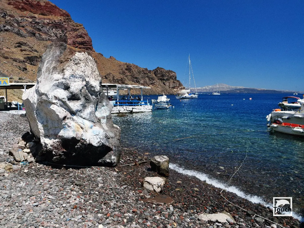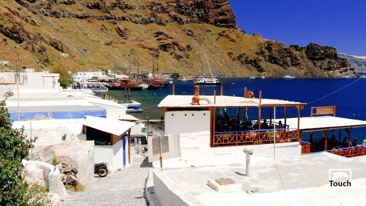 Includes: Perissa, Perivolos, Vlychada, Eros, Almyra, Akrotiri, Red Beach (Kokkini), Kambia, White Beach (Aspri), Black Beach, Mesa Pigadia, Platys Gialos, Agios Nikolaos, Apothikes (Caldera) - Balos Bay, Thermi, Plaka, Hot Springs, Palea Kameni, Korfos, Thirasia, Agii Epta Pedes, Armeni, Agios Nikolaos, Kantharos, Mavropetra, Baxedes, Kouloumbo, Pori, Xiropigado, Vourvoulos, Kanakari, Karterados, Monolithos, Agia Pareskevi, Kamari