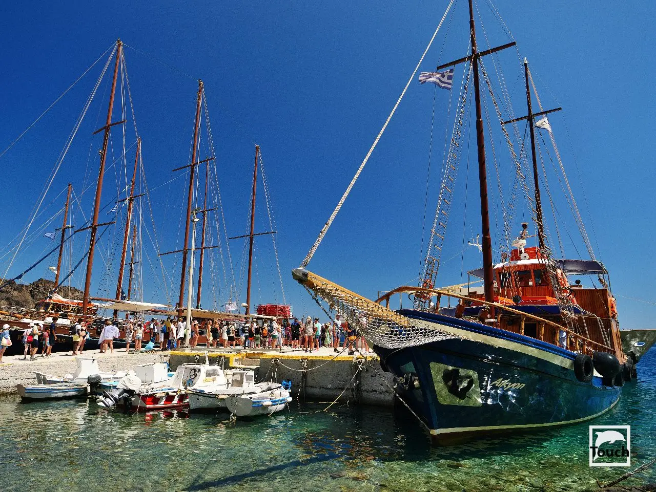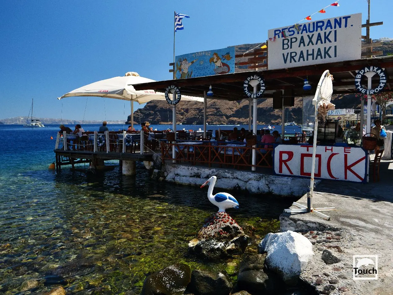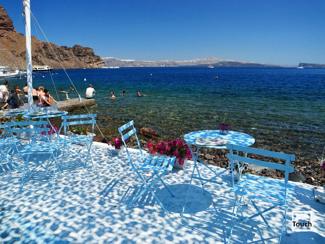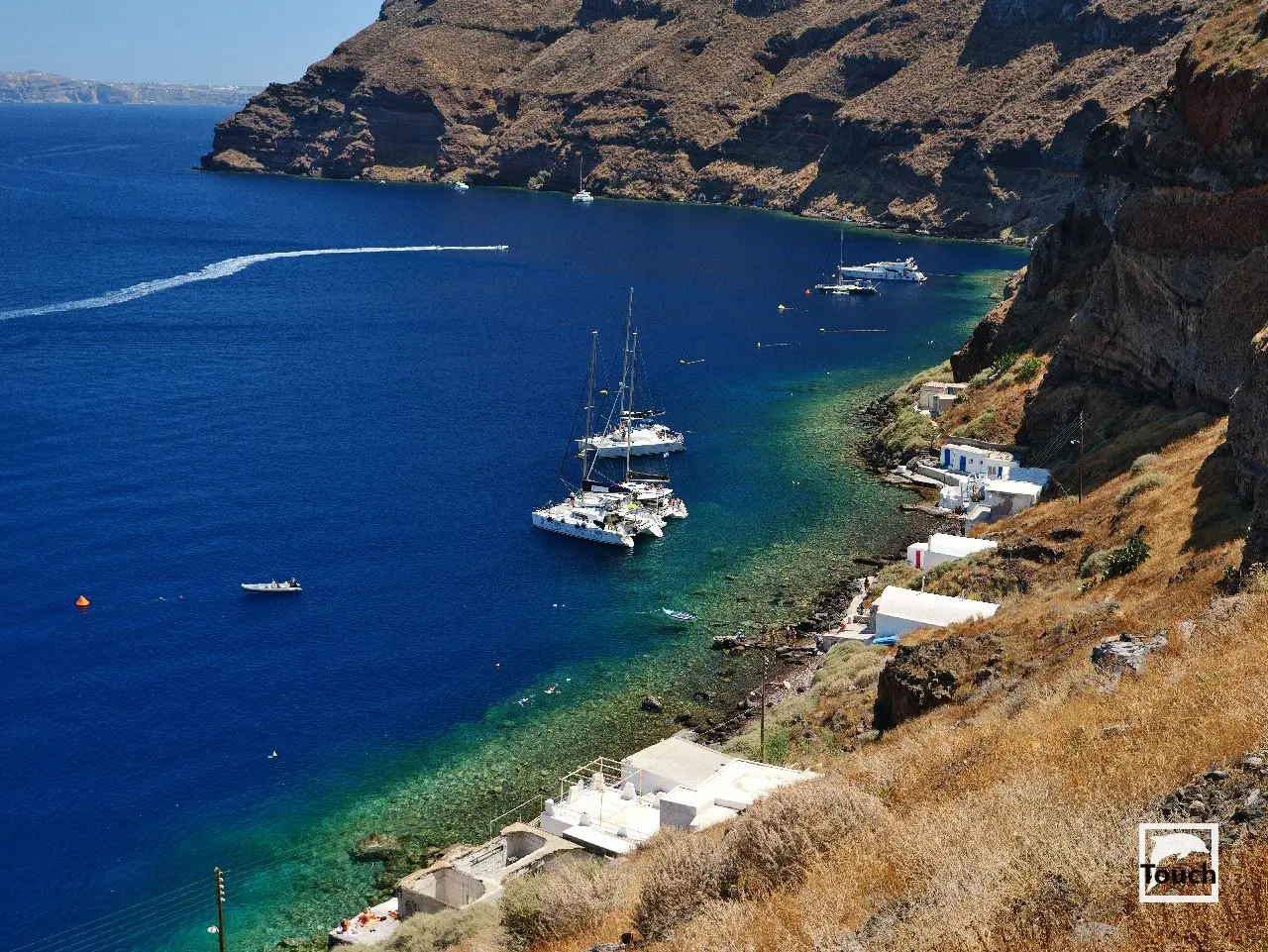 Includes: Perissa, Perivolos, Vlychada, Eros, Almyra, Akrotiri, Red Beach (Kokkini), Kambia, White Beach (Aspri), Black Beach, Mesa Pigadia, Platys Gialos, Agios Nikolaos, Apothikes (Caldera) - Balos Bay, Thermi, Plaka, Hot Springs, Palea Kameni, Korfos, Thirasia, Agii Epta Pedes, Armeni, Agios Nikolaos, Kantharos, Mavropetra, Baxedes, Kouloumbo, Pori, Xiropigado, Vourvoulos, Kanakari, Karterados, Monolithos, Agia Pareskevi, Kamari