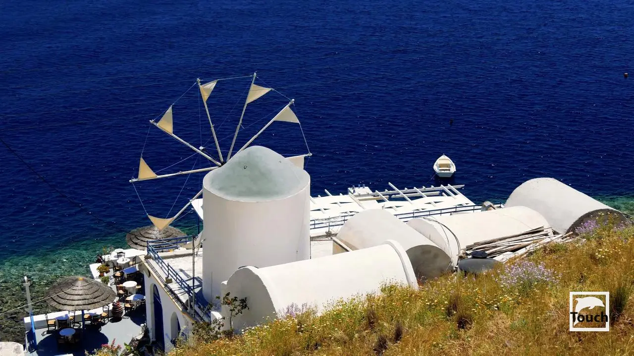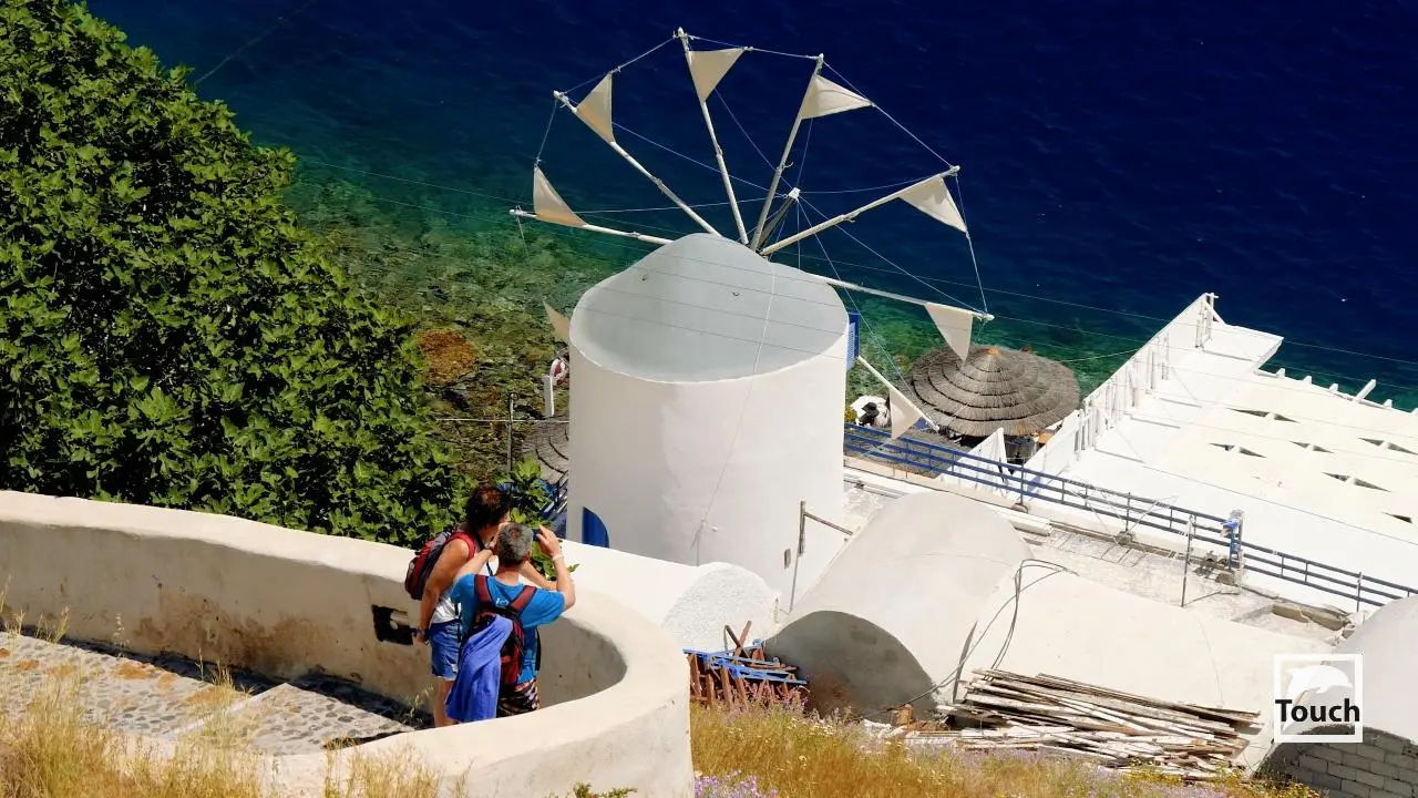 Includes: Fira, Imerovigli, Oia, Katharos, Mavropetra, Cape Colombo, Churches Agios Georgios & Panagia Tou Kalou, Pori, Vourvoulos, Kanaraki, Gialos Karteradou, Monolithos, Akra Kamari beach, Ancient Thera, Kamari, Santorini brewery, Wine museum, Exo Gonia, Pyrgos, Monastery Profiti Ilia, Perissa, Emporio, Vlychada, Ancient Akrotiri, Red beach, Kambia, Mesa Pigadia, Lighthouse, Gialos, Akrotiri, Caldera beach, Caldera view, The Hearth of Santorini, Santo Wines, Ormos Athinios, Nea Kameni Volcano, Thirasia