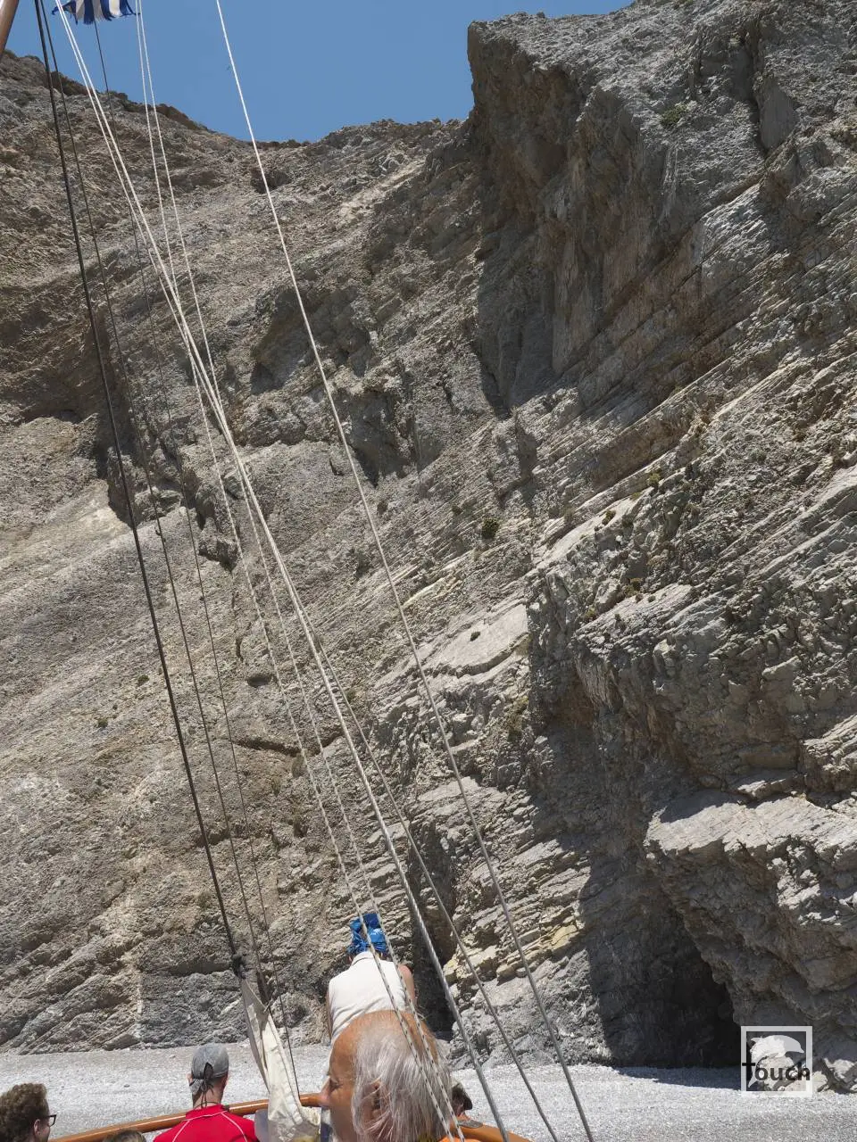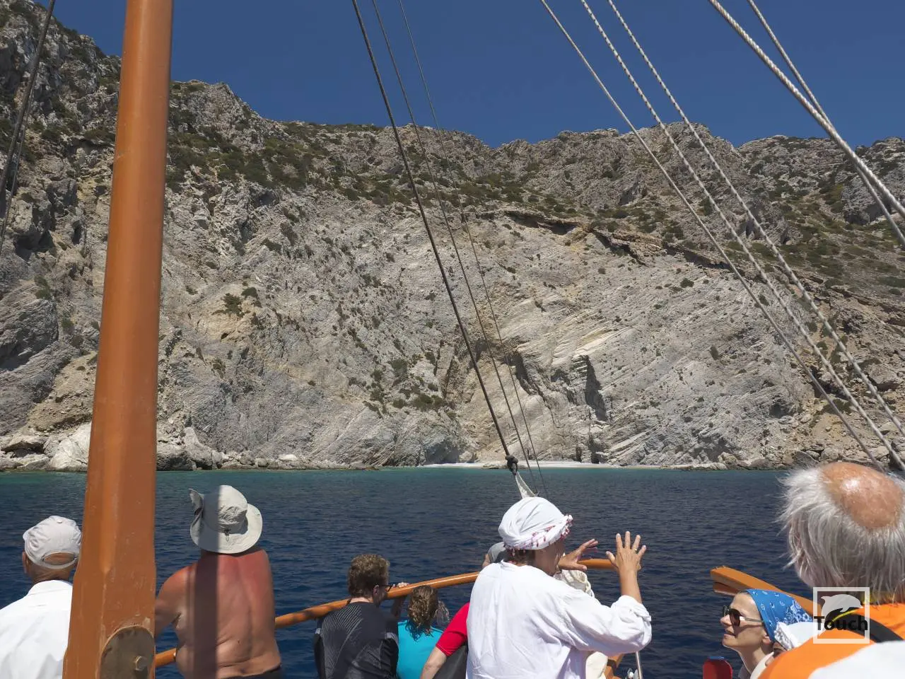 In addition to exploring sea caves and swimming on the beautiful beaches of Saria Island, you can also hike through the canyon to the church of Agios Zacharios or explore the ruins of pirate villages.
