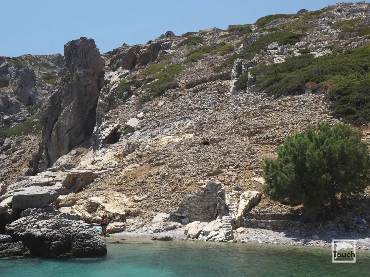 In addition to exploring sea caves and swimming on the beautiful beaches of Saria Island, you can also hike through the canyon to the church of Agios Zacharios or explore the ruins of pirate villages.