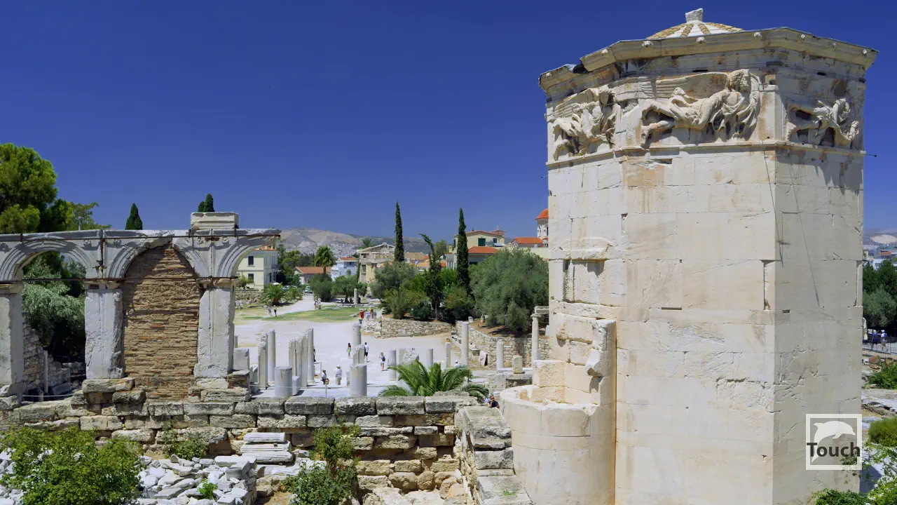Includes: Athens - Acropolis of Athens, Acropolis Museum, Areopagus Hill, Philopappos Hill, The Changing of the Guard, Athens National Garden, Panathenaic Stadium, Lycabettus Hill, National Library, University of Athens, Academy of Athens, Ancient Agora, Temple of Hephaestus, Stoa of Attalos, Monastiraki Square, Hadrian's Library, Roman Agora, Tower of the Winds, Aristotle's Lyceum, Archaeological Site of Kerameikos, National Archaeological Museum