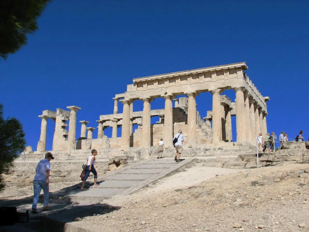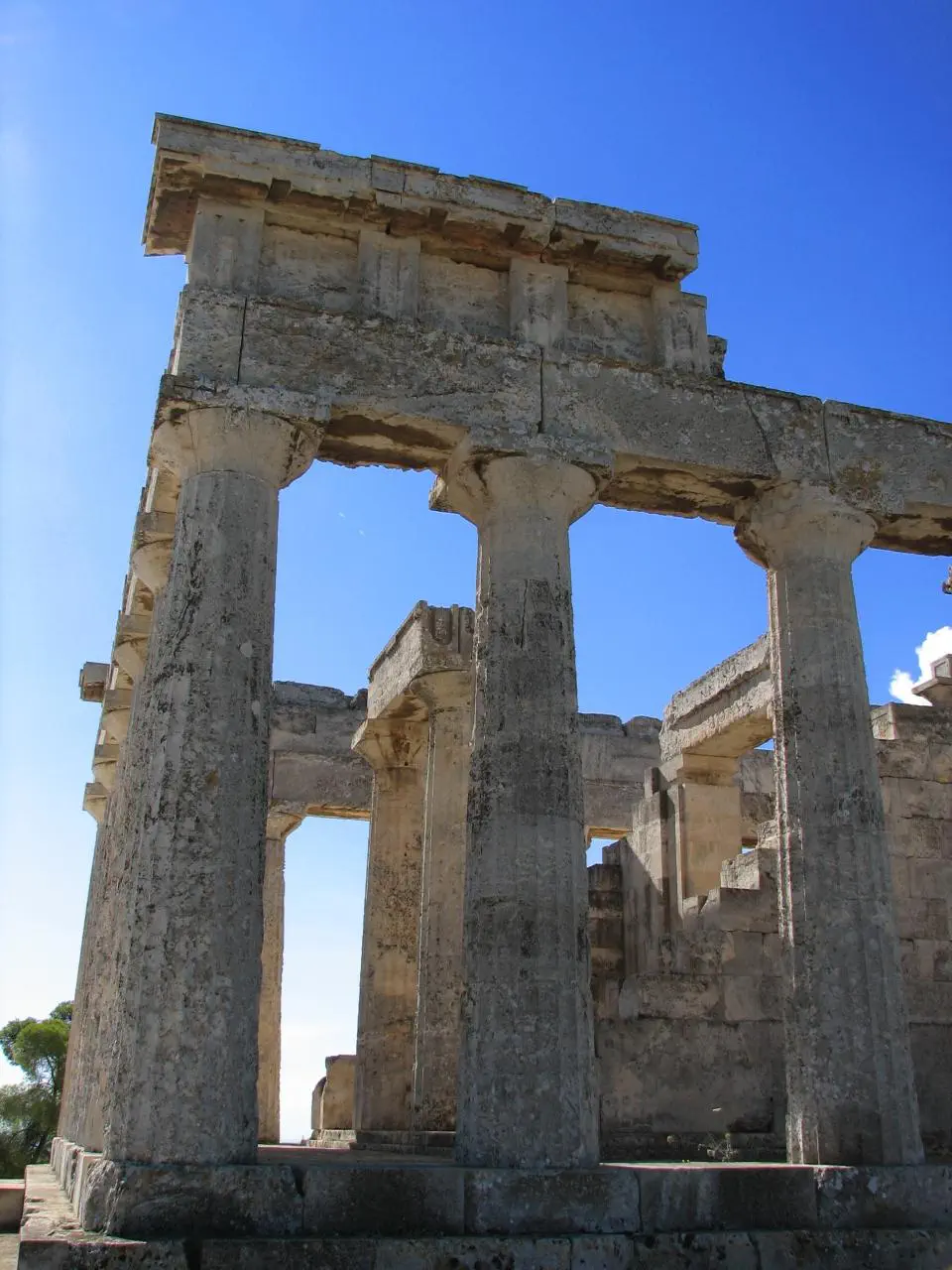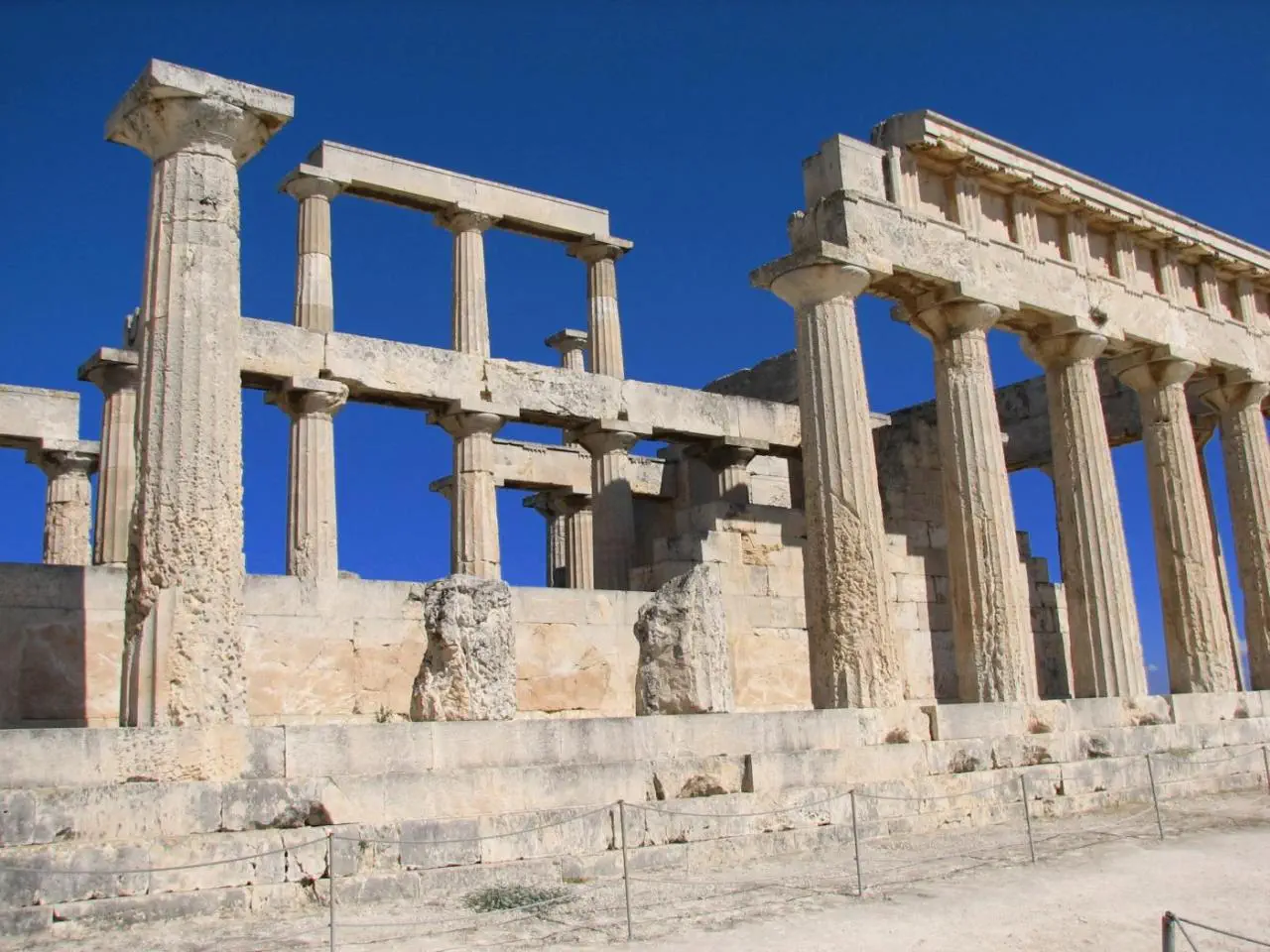 The Temple of Athena Aphaia stands on a hill in the northeastern part of the island, overlooking the surrounding area and the blue sea. It is one of the best-preserved Doric shrines in Greece. Of the temple's 34 columns, 24 have been preserved.