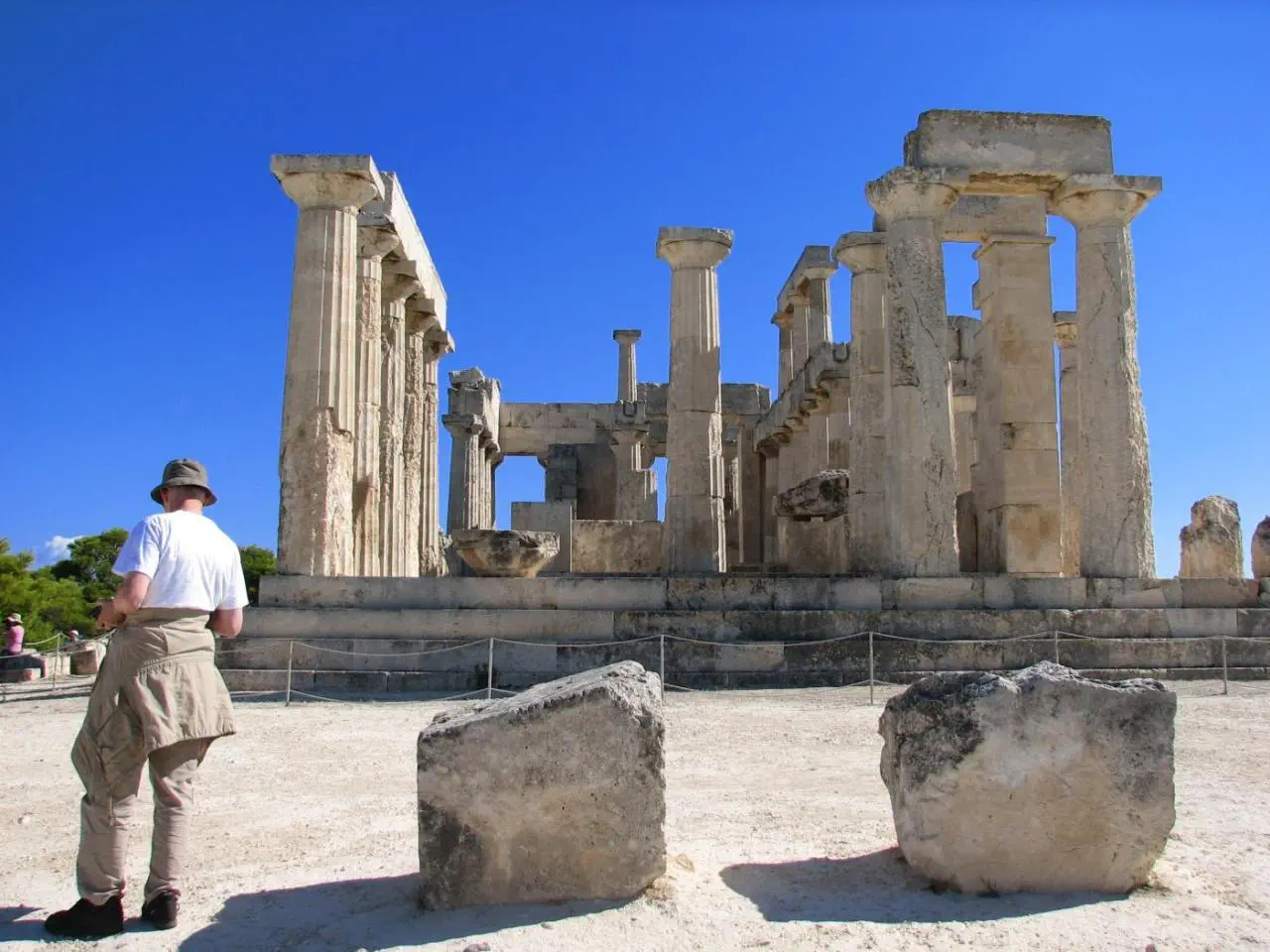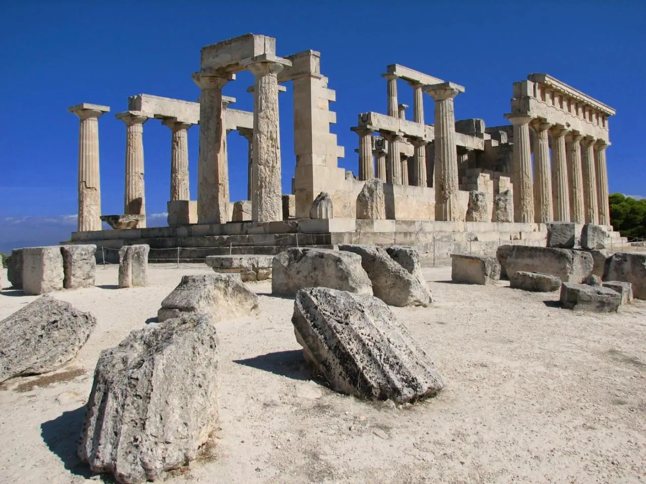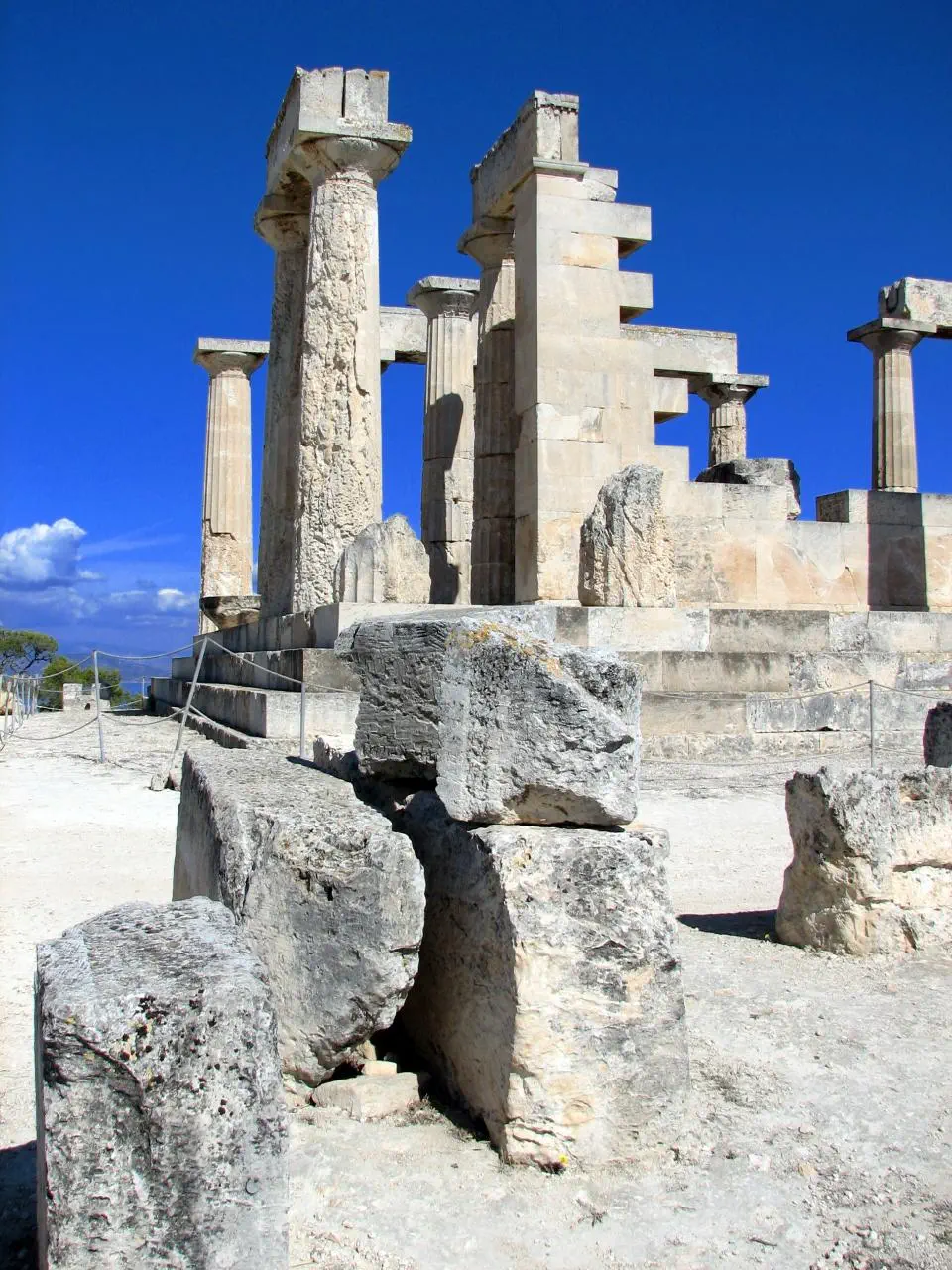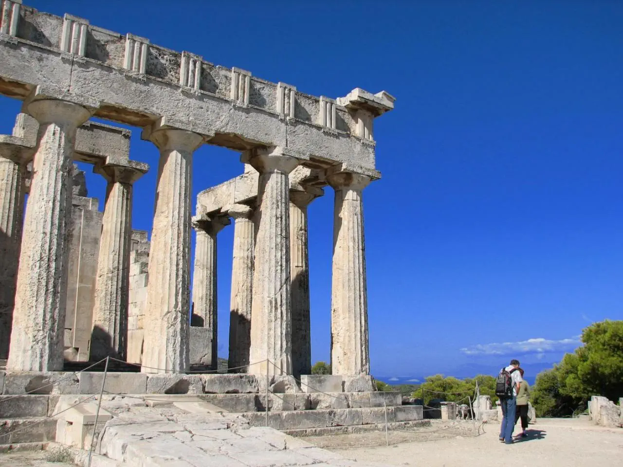 The Temple of Athena Aphaia stands on a hill in the northeastern part of the island, overlooking the surrounding area and the blue sea. It is one of the best-preserved Doric shrines in Greece. Of the temple's 34 columns, 24 have been preserved.