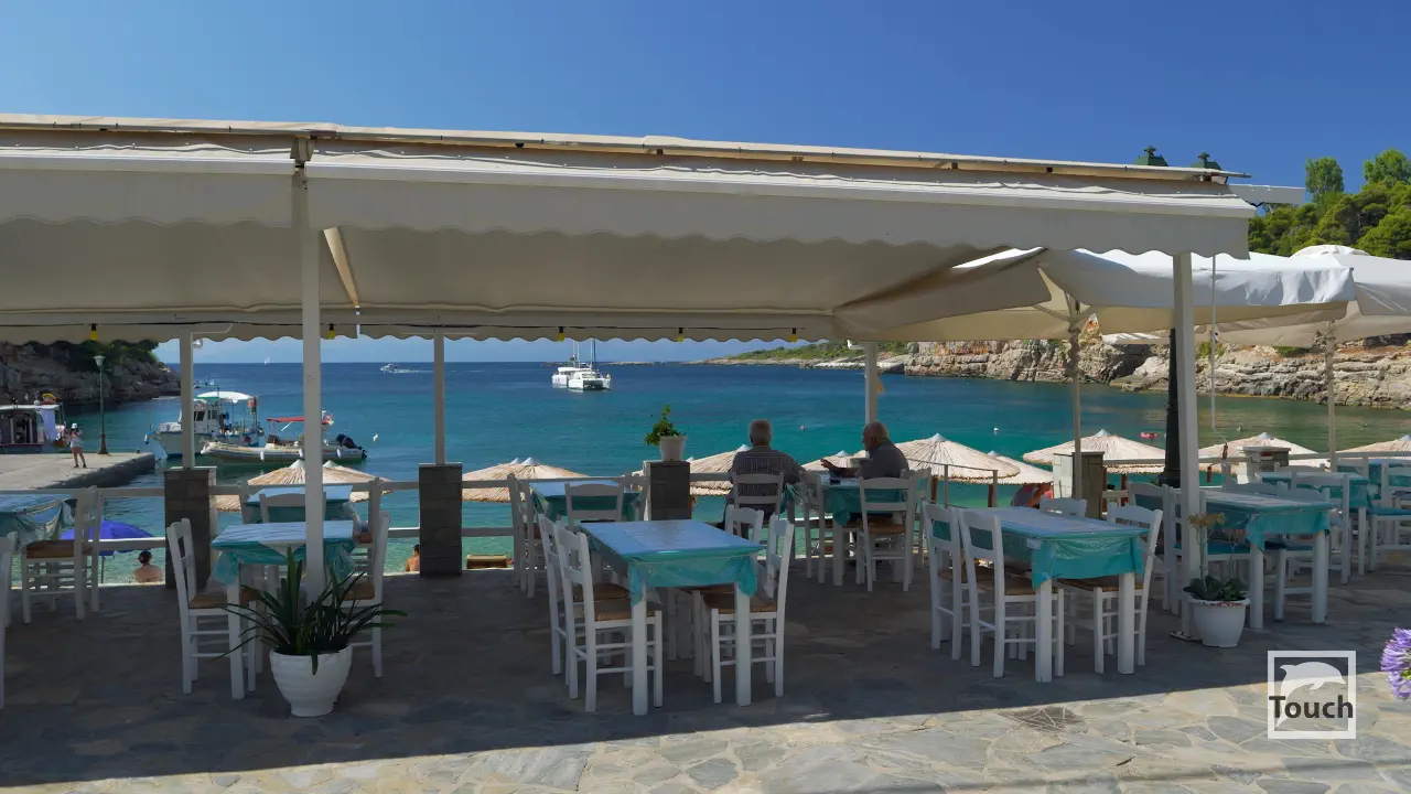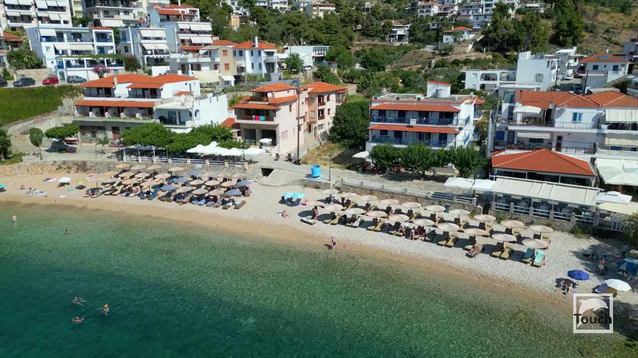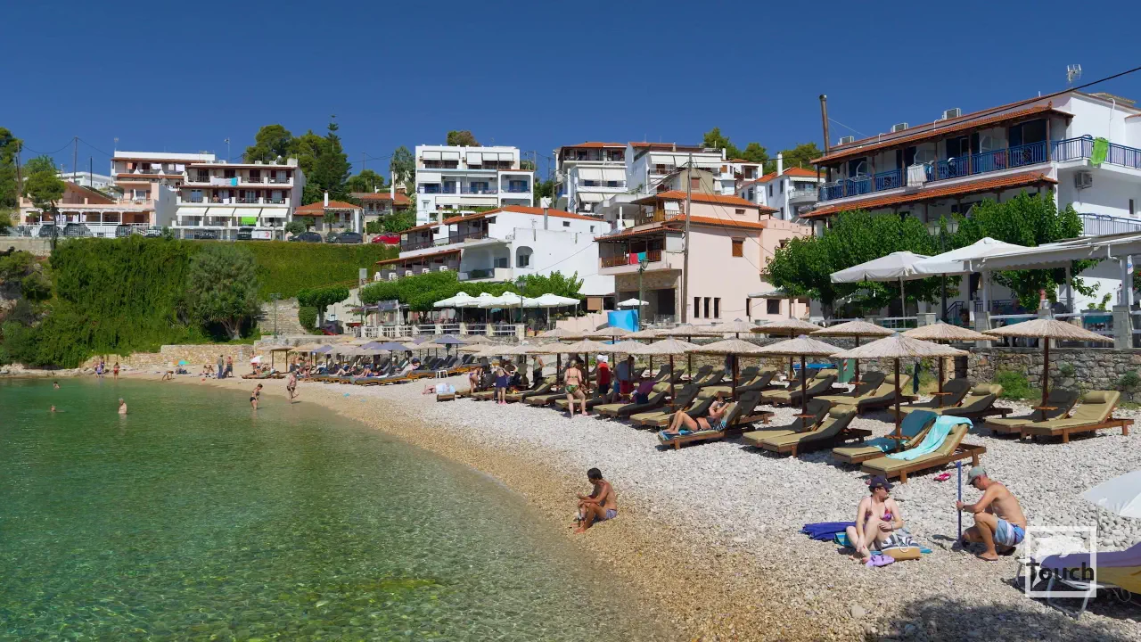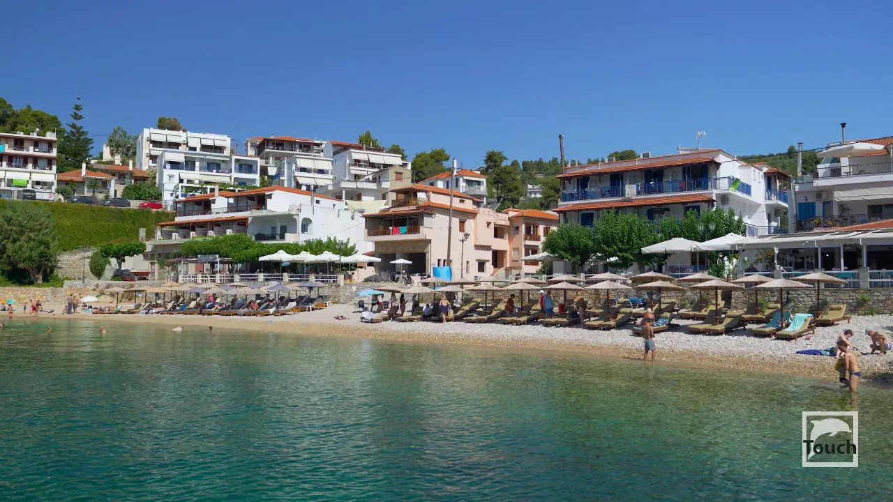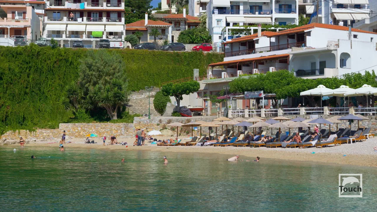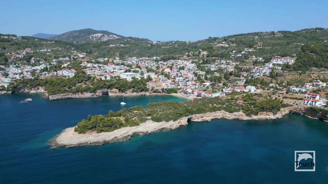 Includes: Alonissos, Palio Chorio, Megalos Mourtias, Kali Voli, Gialia Beach, Patitiri, Rousoum Gialos, Votsi, Spartines Beach, Milia Beach, Chrisi Milia Beach, Kokkinokastro, Tzortzi Gialos Beach, Leftos Gialos Beach, Agios Petros Beach, Steni Vala, Glyfa Beach, Glyfa Beach - Suelto Bar, Kalamakia, Agios Dimitrios Beach, Gerakas, Megali Ammos Beach, Tourkoneri Beach, Agii Anargyri, Tsoukalia Beach