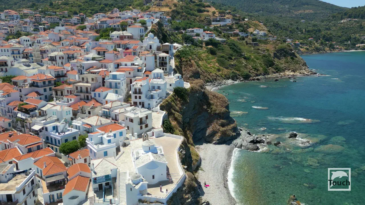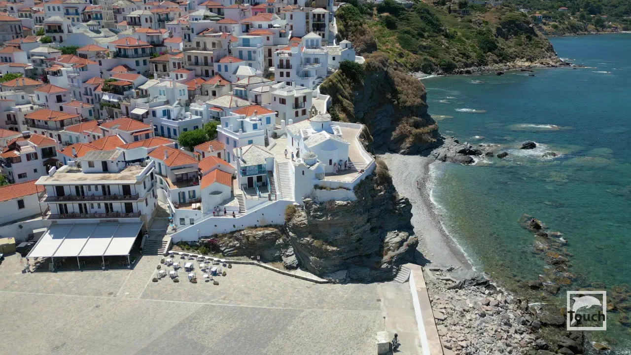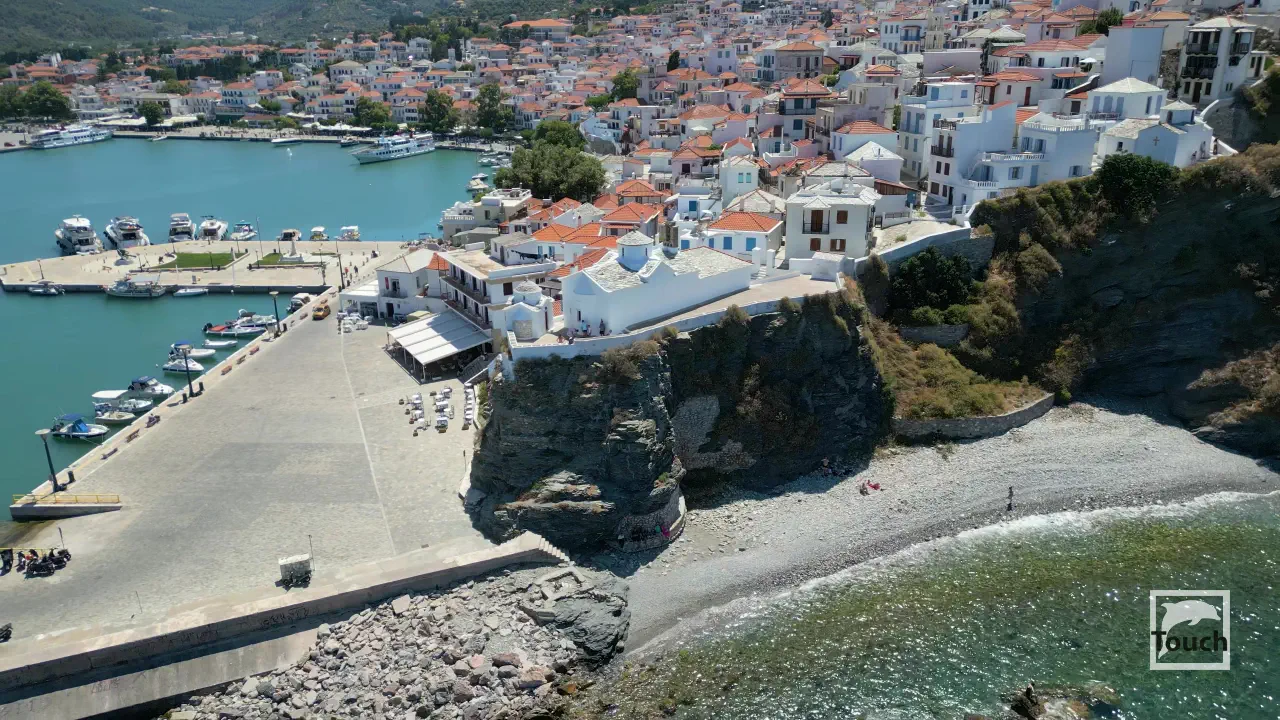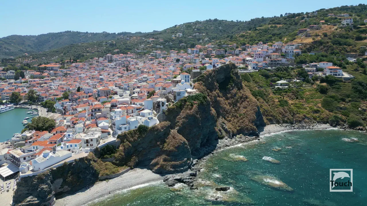 Includes: Skopelos, Glyfoneri Beach, Glisteri Beach, Agios Ioannis Church, Agios Ioannis Beach, Spilia Beach, Chondrogiorgi Beach, Pethameni Beach, Angeletou Beach, Perivoliou Beach, Glossa, Loutraki, Armenopetra Beach, Neo Klima, Elios Beach, Chovolo Beach, Ekatopenintari Beach, Ftelia Beach, Kastani Beach, Milia Beach, Panormos, Limnonari Beach, Agios Riginos Monastery, Agnontas, Cape Amarandos, Drakondoschisma, Stafilos beach, Velanio beach, Podromos Monastery, Evangelismos Monastery, Skopelos Town